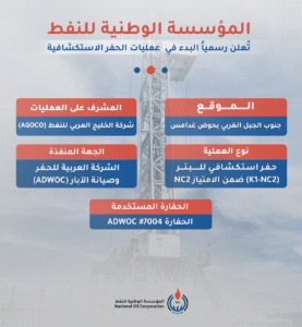 المؤسسة الوطنية للنفط تُعلن رسمياً البدء في عمليات الحفر الاستكشافية في البئر K1-NC2