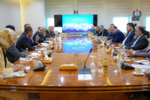 عُقد صباح اليوم بمقر المؤسسة في طرابلس اجتماعٌ موسَّع بين رئيس المؤسسة الوطنية للنفط المهندس مسعود سليمان، ووفد من البنك الإسلامي للتنمية برئاسة السيد أنس عيصامي المدير العام، بحضور السيد أحمد عمار عضو مجلس الإدارة للمشاريع والاستثمار، ومدير عام المالية، وعدد من الإدارات الفنية والمختصة من كلا الجانبين.