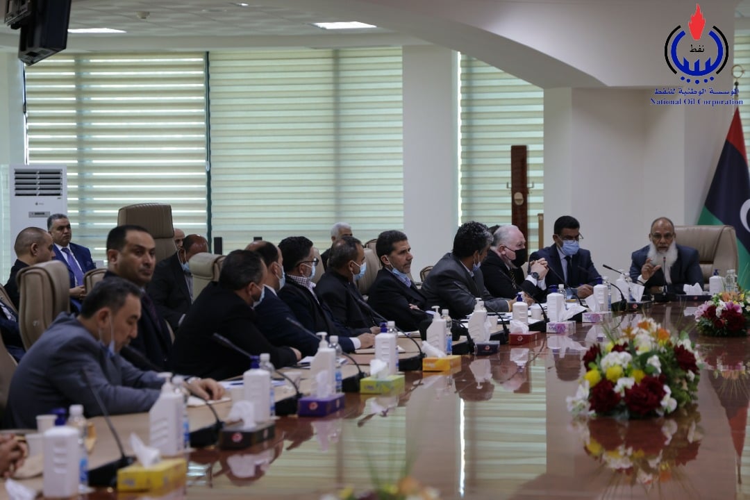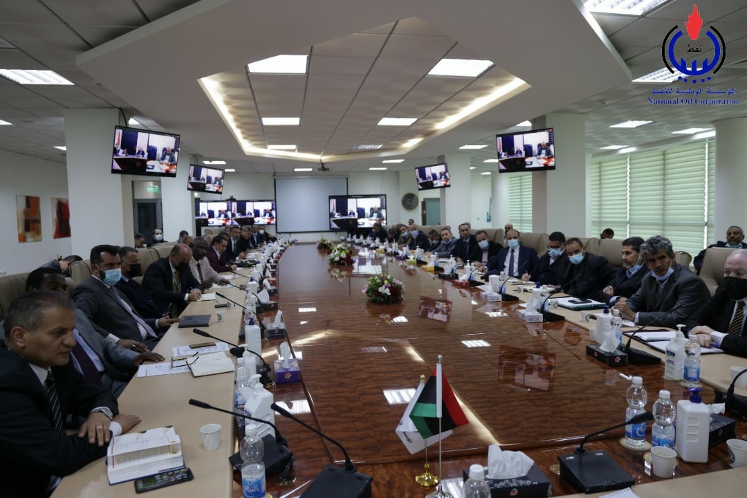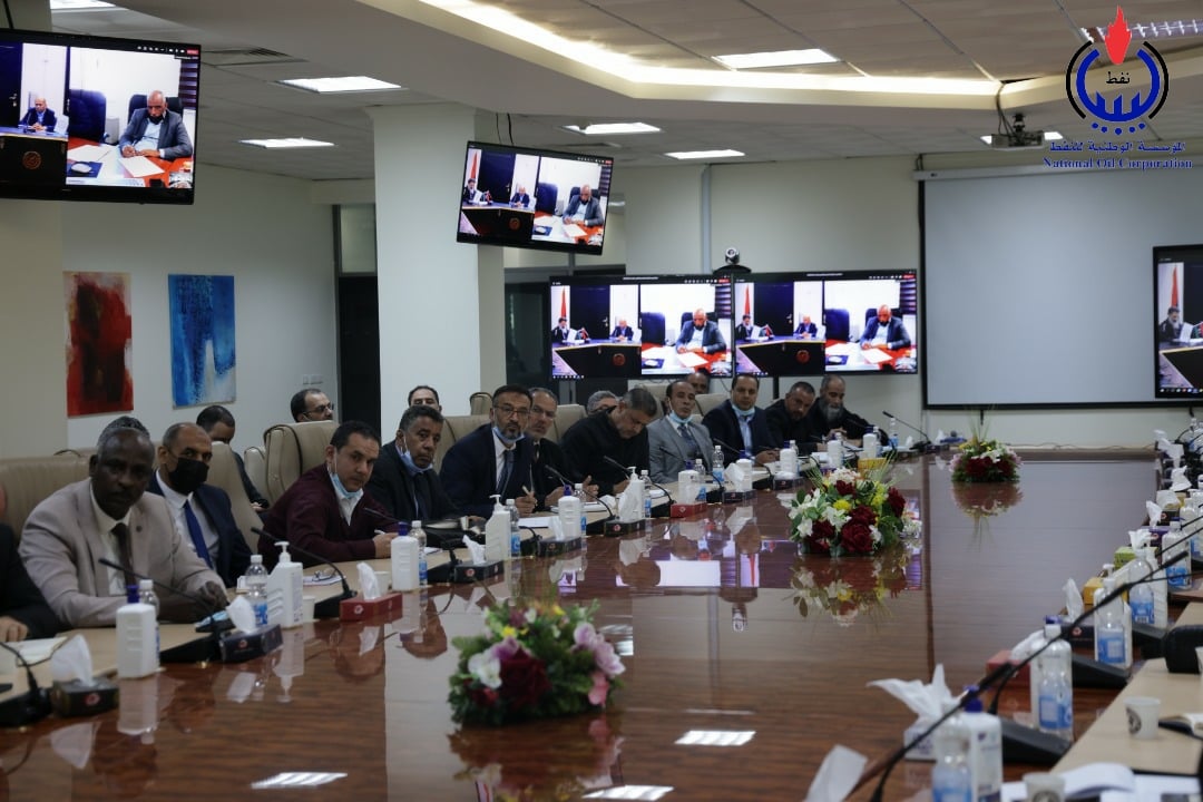 A meeting was held on Sunday, March 13, 2022 under the guidance of the Chairman of the Board of Directors of the NOC, and at the invitation of Mr. Naeem Al Gharyani, General Manager of Finance of NOC, in the presence of Mr. Taher Al-Ashkhm, Manager of internal audit department of the NOC, Managers of Departments of the General Department of Finance, Chairmans of the Asset Disposal Committee, Members of the Management Committees for Finance and Management, and Directors of Financial Management of sector companies, to discuss topics that will overcome difficulties and solve the problems facing the oil sector and gas, including: