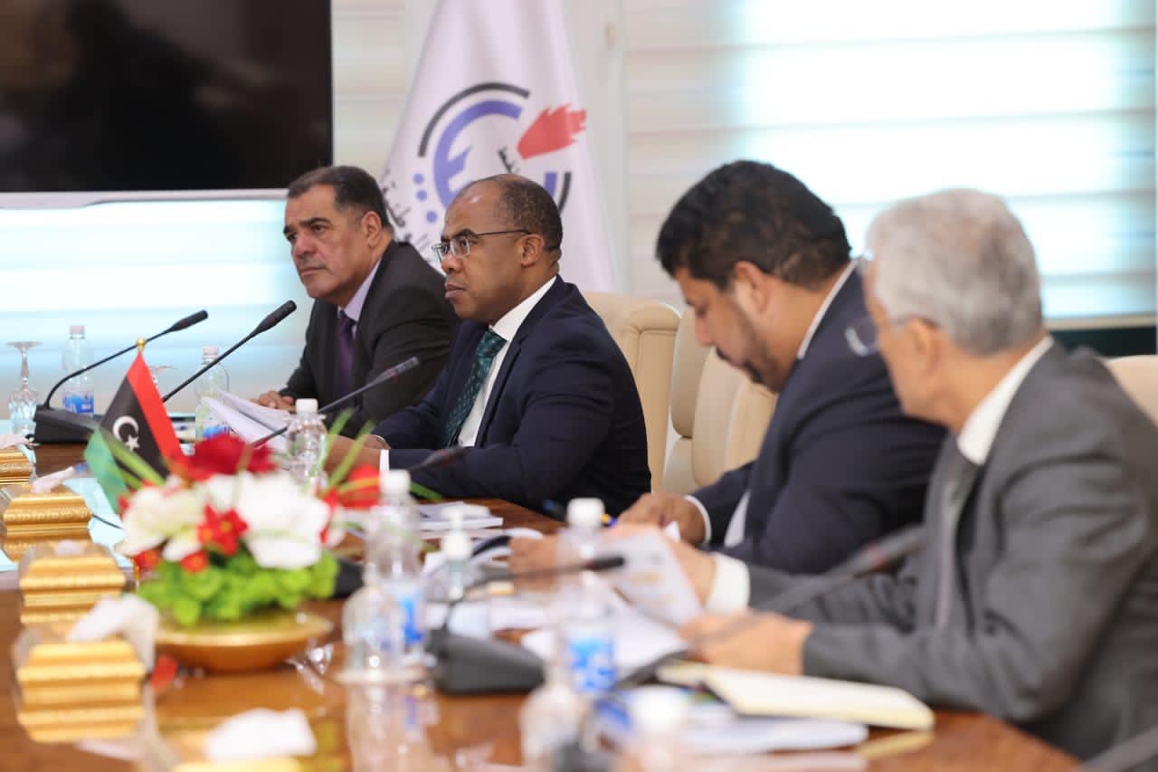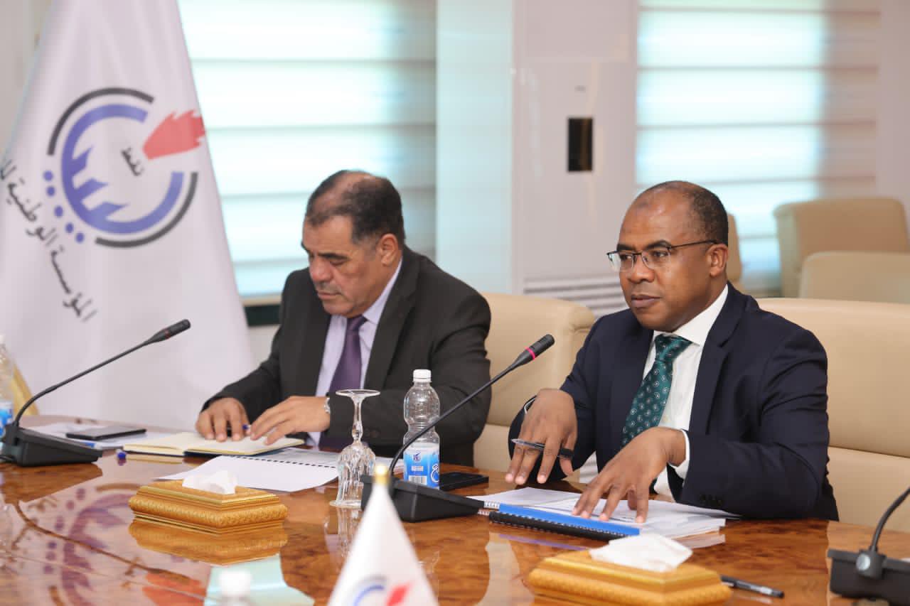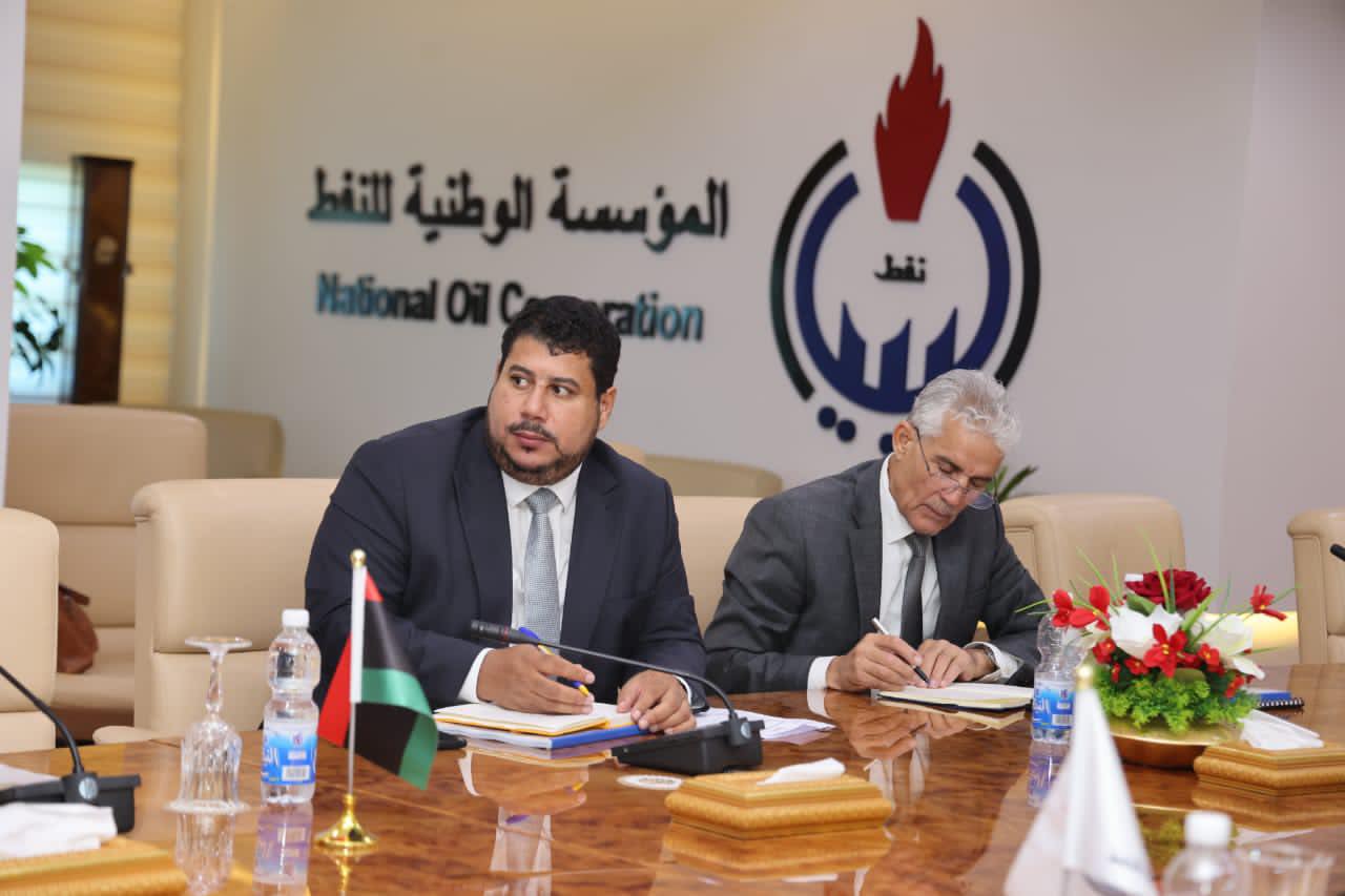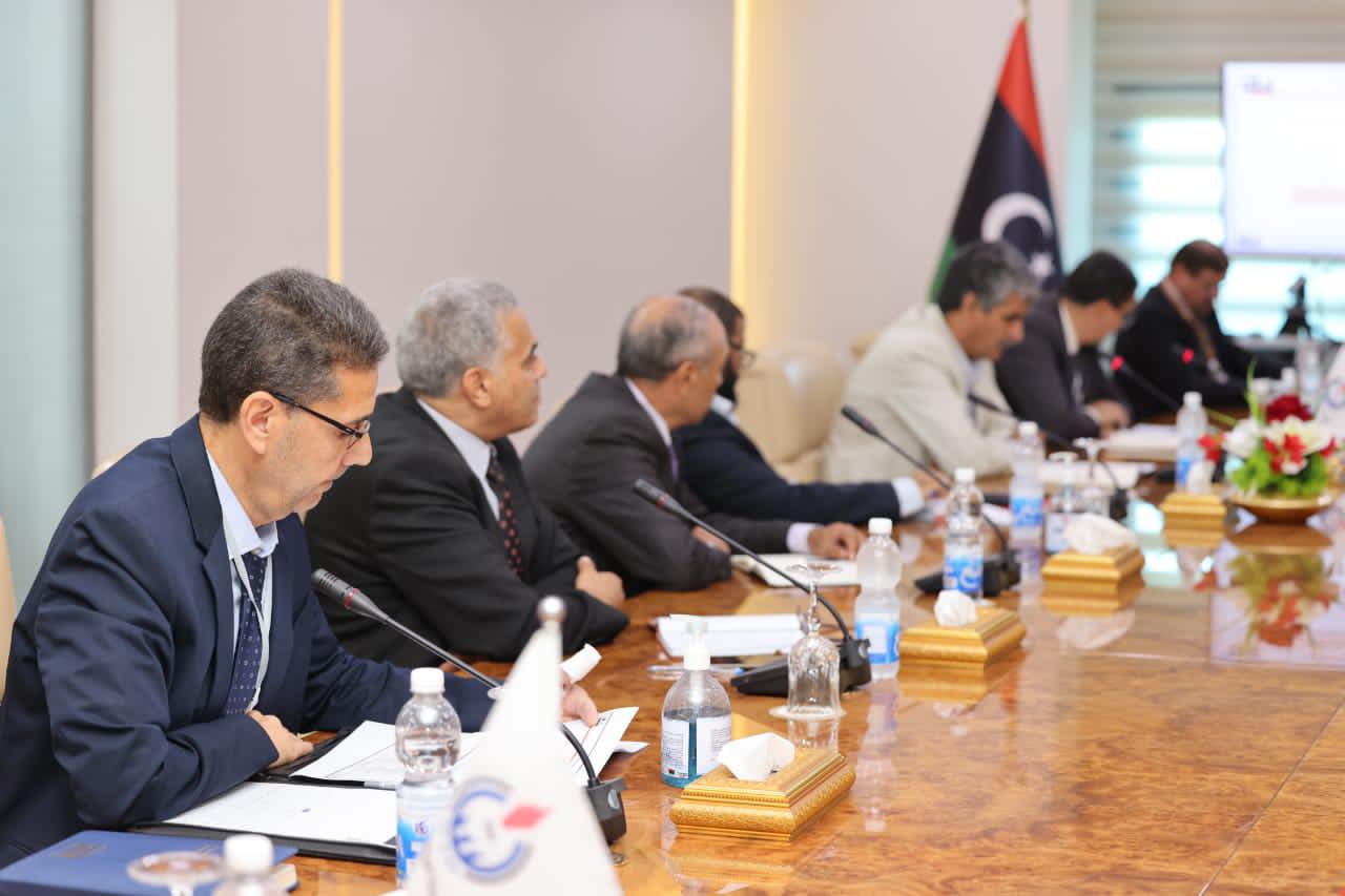 The members of the Board of Directors, Dr. Khalifa Abdul Sadiq, Ahmed Ammar, Hussein Saffar and Masoud Moussa, held a meeting on Tuesday, at the headquarters of the NOC inTripoli, with the Chairman of the Management Committee of TAKNIA Libya Engineering Company, Adel Abaza, members of the management committee and a number of managers of departments in the company.
