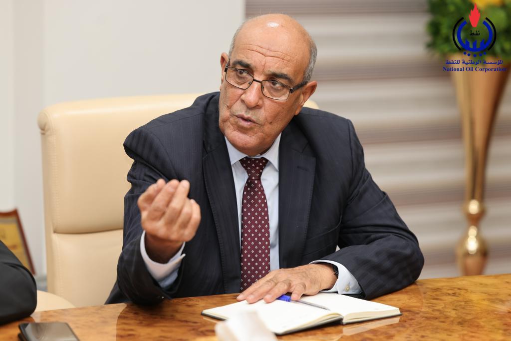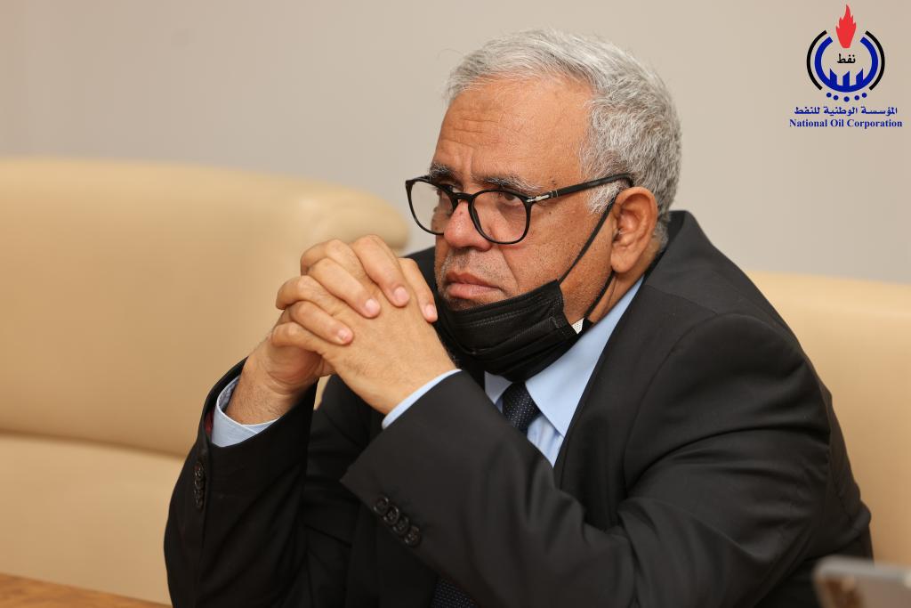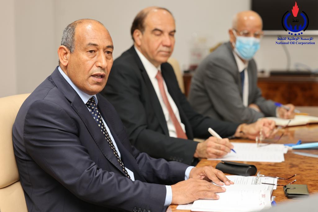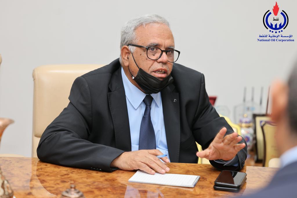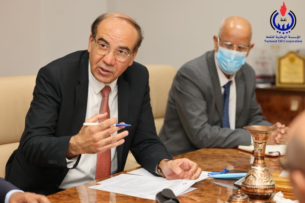 On Wednesday, April 6, 2022, the chairman of the board of directors of the National Oil Corporation (NOC), Mr. Mustafa Sanalla, held a meeting with the chairman of the follow-up committee of Mellitah company, Mr. Salaheddine Ali, and members of the follow-up committee Messrs. Mohammed Abu Azza, Mohammed Durar, and Moftah Al-Warfli, in the presence of the members of the board of directors of the NOC, Mr. Abulgasem Shengeer and Mr. Elamari Mohamed.