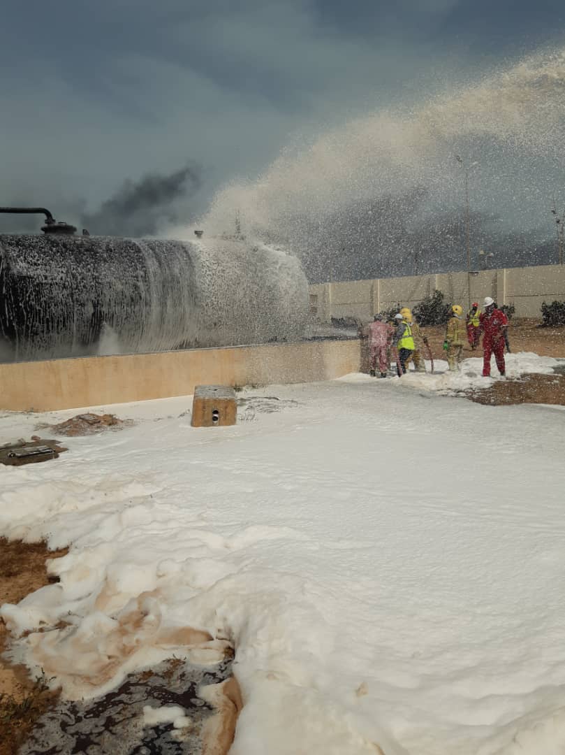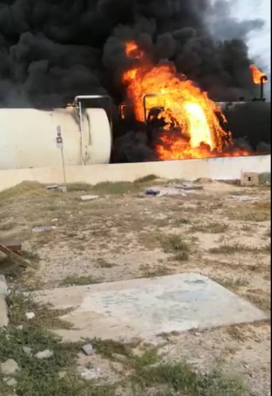 Additionally, the attack affected other 6 tanks and caused huge damage to them as a result of the fire blazes. The depot contains 10 jet fuel tanks of 50000 liters each in addition to the airplane supply system that were directly damaged and became out of service. As well as a vehicle supplying jet fuel to air ambulance which was directly hit. This horrific accident was quickly dealt with in a highly professional manner by the brave fire fighters from Brega Petroleum Marketing company, who managed to extinguish the fire completely and with the help of the National Safety Authority, whom we salute their efforts and courage.