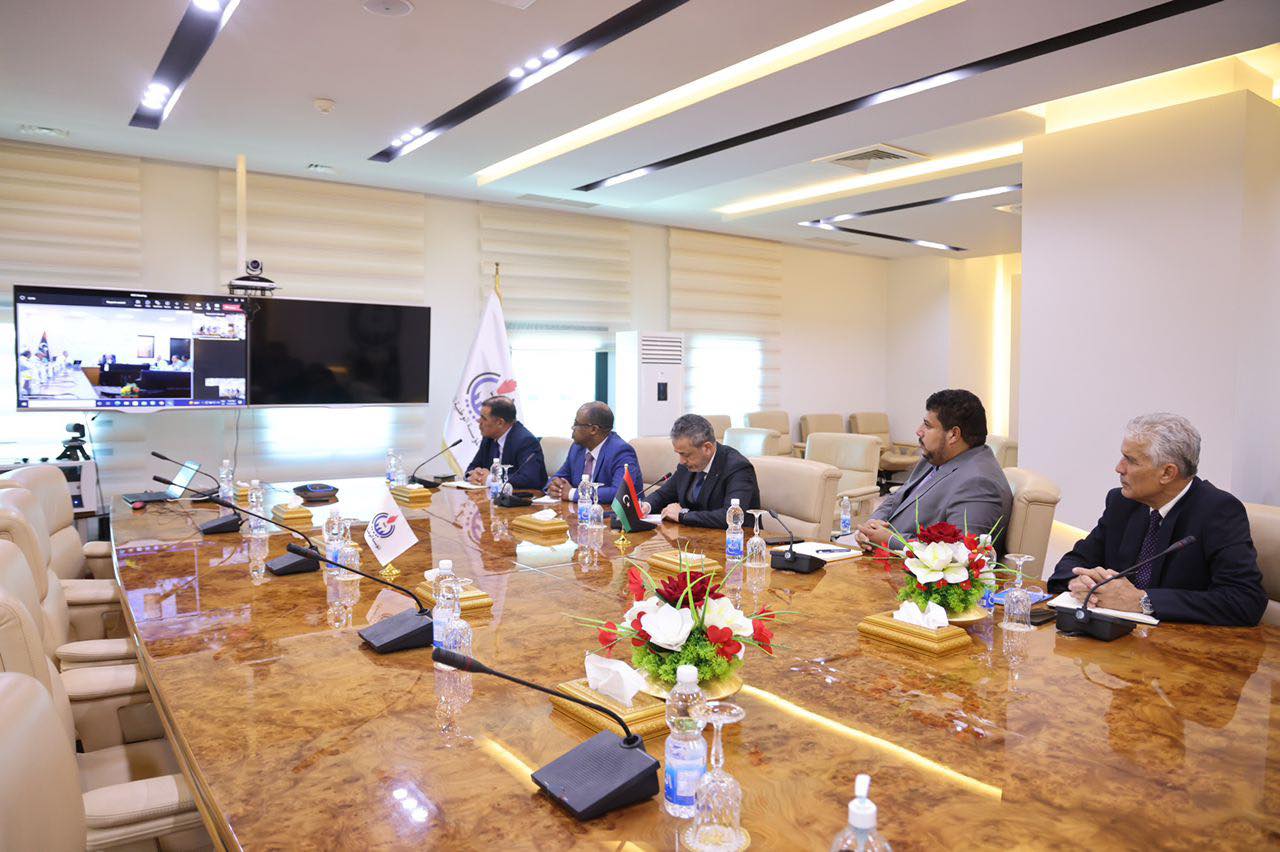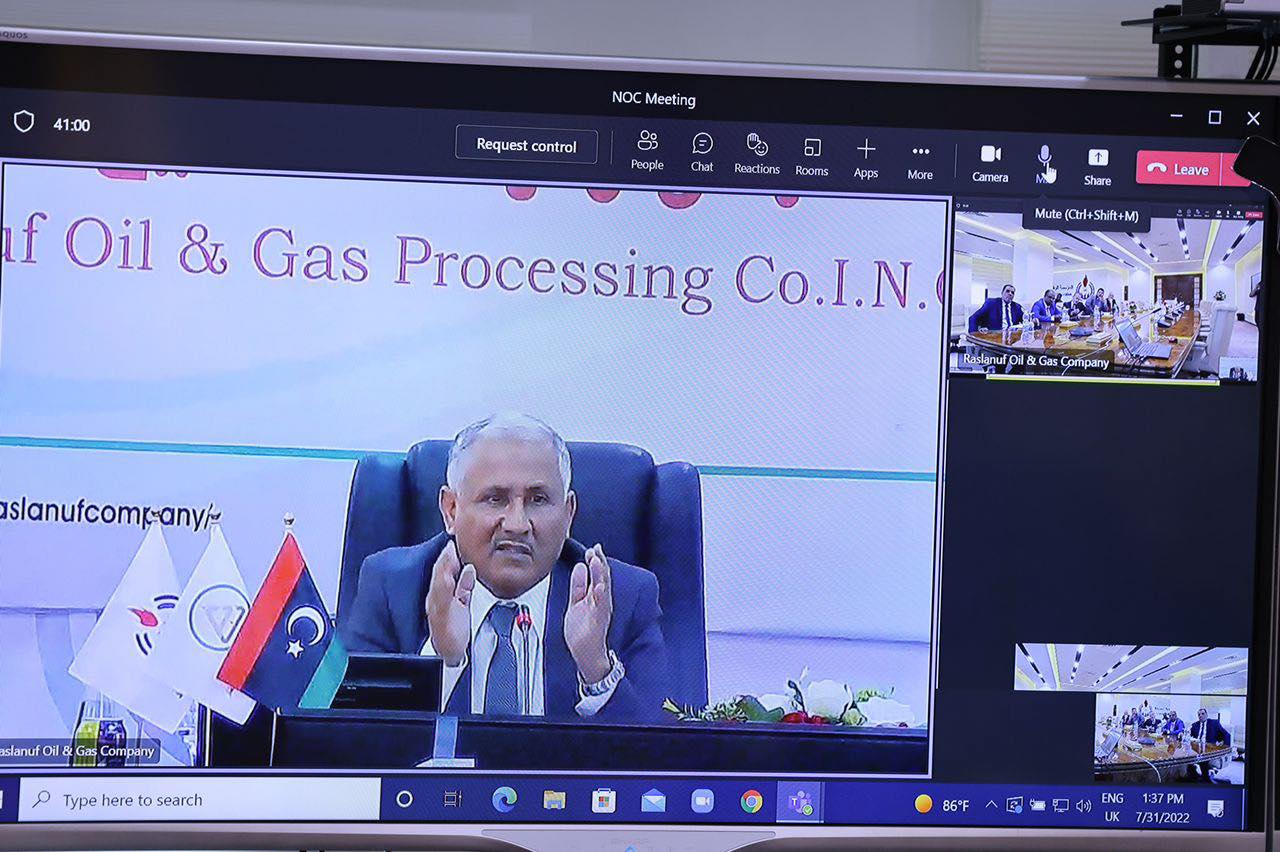 On Sunday, at the headquarters of the National Oil Corporation (NOC) in Tripoli, the Board of Directors held a meeting via the closed circuit, with presidency of Mr. Farhat Ben Gdara, and in the presence of the members of the Board of Directors Dr. Khalifa Abdul Sadiq, Ahmed Ammar, Hussein Saffar and Masoud Moussa, with the Chairman of the Board of Directors of Ras Lanuf Oil and Gas Processing company, Mr. Shaaban Basibso, members of the Board of Directors of the company, and a numbe