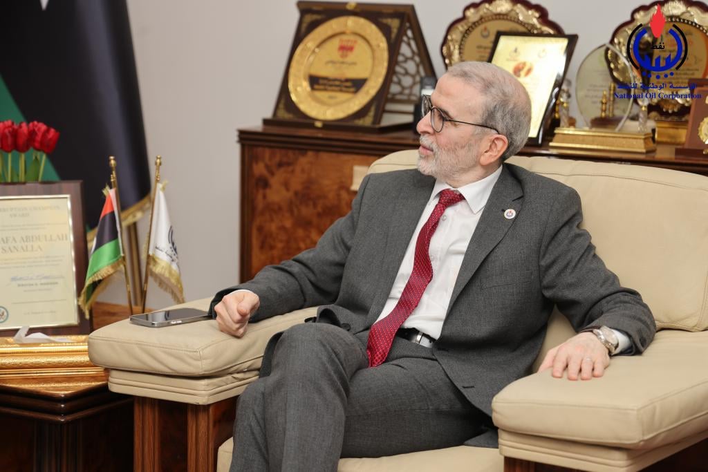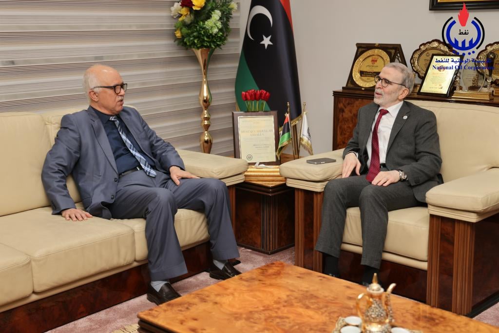 On Wednesday, April 6, 2022, the chairman of the board of directors of the National Oil Corporation (NOC), Mr. Mustafa Sanalla, has received the chairman of the Administrative Supervisory Authority, Mr. Suleiman al-Shanti, in the presence of His Excellency the Acting Minister of Finance, Mr. Mohammed Al-Shoobi.