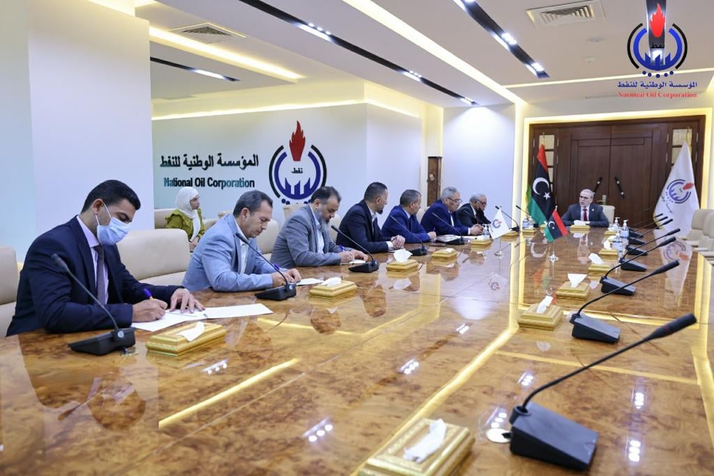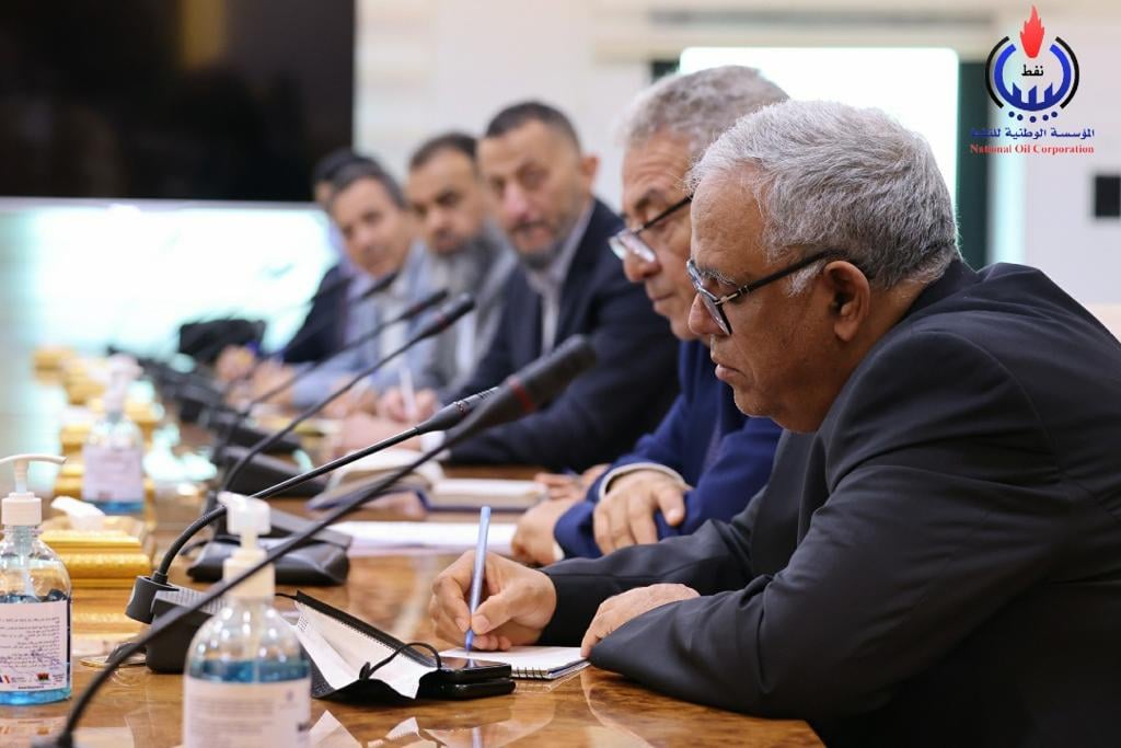 On Tuesday, April 5, 2022, at the headquarters of the NOC in Tripoli, the chairman of the board of directors of the NOC, Mr. Mustafa Sanalla, held a meeting with the managers of the financial departments of the NOC, , in the presence of the member of the board of directors of the NOC for Finance and Management Mr. Al Ammari Mohammed, including: the general manager of finance Mr. Naeem Al Gharyani, the manager of the department of general accounts Mr. Salaheddine Ali, the manager of the department of audit and follow-up of corporate accounts Mr. Ahmed Al Qajamiya, the manager of financial resources and insurance Mr. Bassem Hashim, the manager of marketing accounts and cost department Mr Fadel Ageel and the manager of budgets and reports Mr. Mohamed AbuRouways.