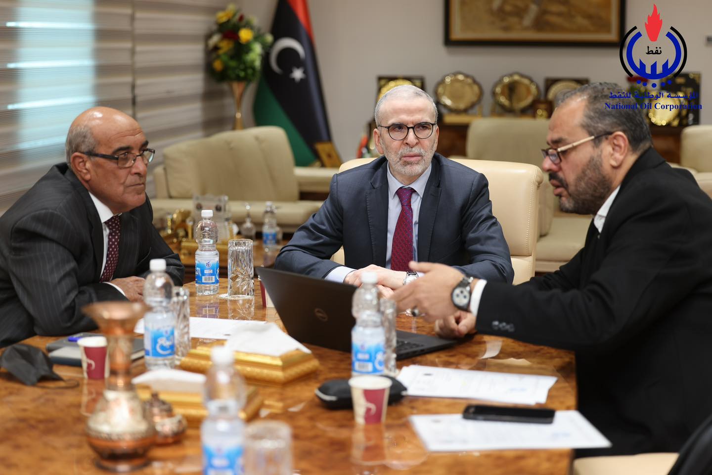 On Wednesday morning, The chairman of the board of Directors of the National Oil Corporation (NOC), Mustafa Sanalla, met at the NOC’s headquarters in Tripoli with the chairman of the management committee of the company Zallaf Libya oil and gas Hussein Abusliana, in the presence of the board member Mr. Abulgasem Shengeer.