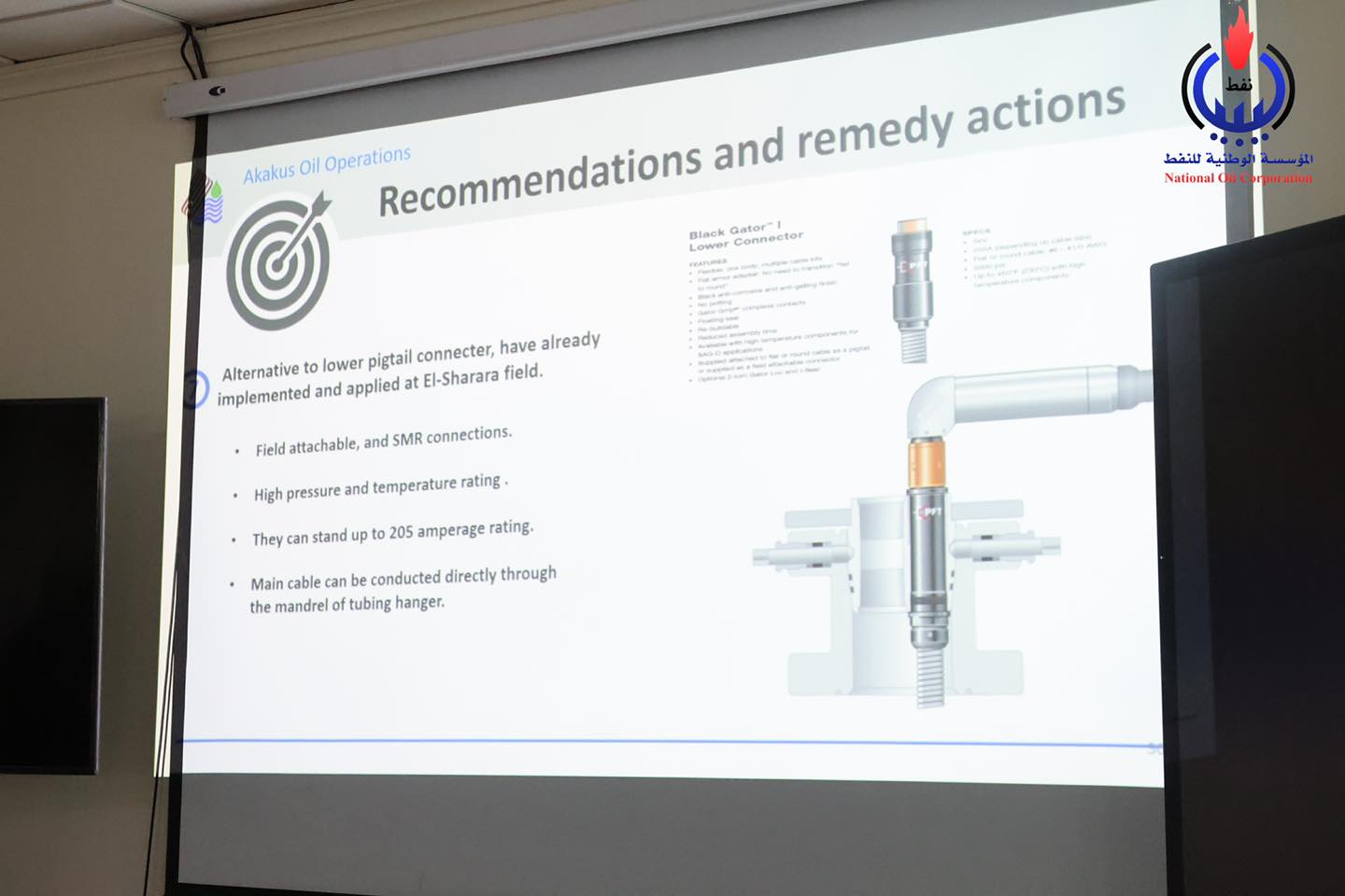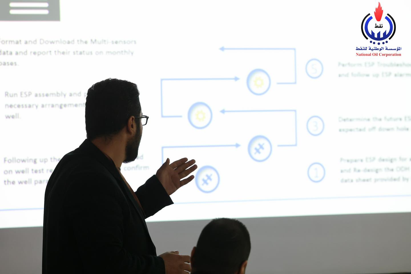 The workshop was attended by the Production Manager Department of the NOC, Mr. Anwar Ageel, and a number of engineers, observers and coordinators of production operations, drilling and maintenance engineers of wells, specialists in the operations of submersible pumps from NOC and oil companies: “Zallaf, Harouge, Mabrouk, Zueitina, Waha, Sirte, Arabian Gulf, Mellitah, Akakus”.